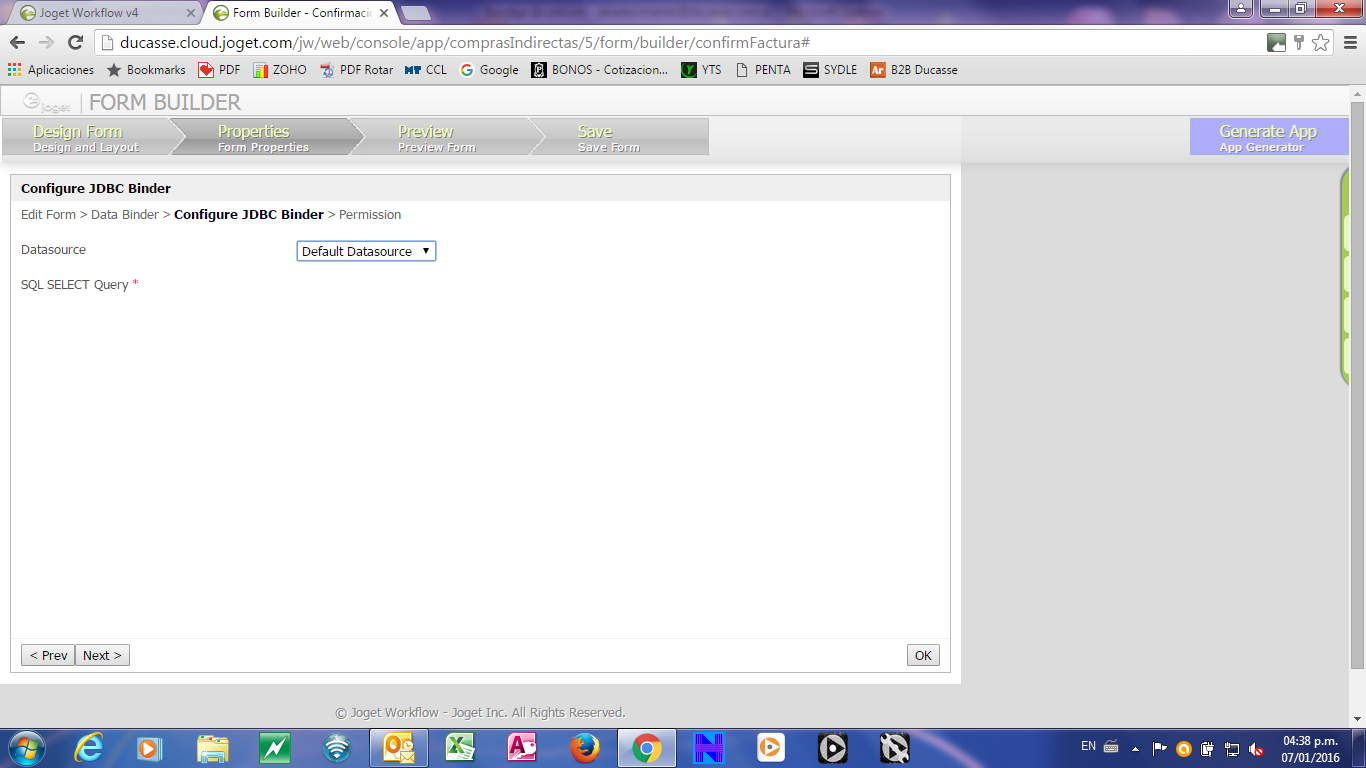 I'm trying to use the "JDBC load Binder" plugin in a form but fund there is no field/space to type my SQL query. Is there anything I'm doing wrong?? Please help!