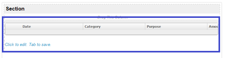 Columns | The columns defined here must be correspondent to the Form chosen above.