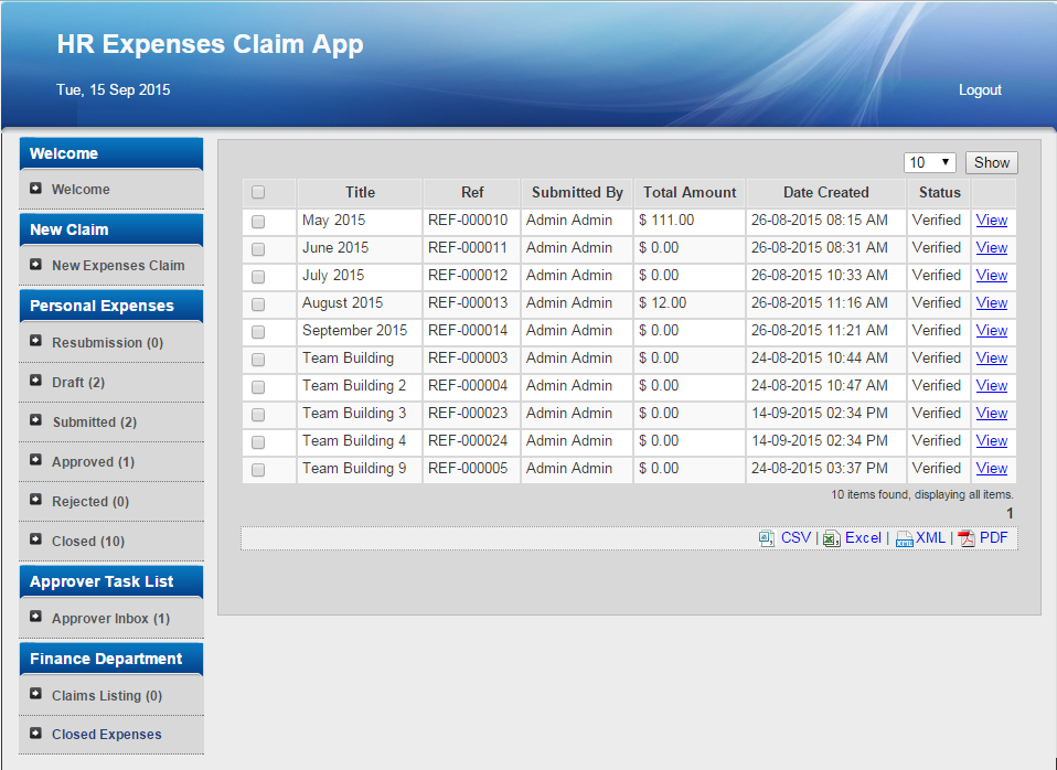 Figure 1: Screenshot showing CRUD taken from the sample HR Expenses Claim app