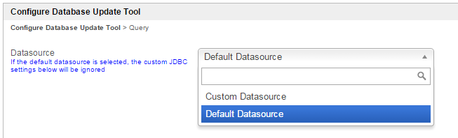 Query | SQL Query. Hash Variable is accepted here. FAQ Q: Can I put in multiple query in the Query itself? A: It depends on the JDBC driver's capability itself. |
