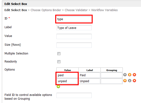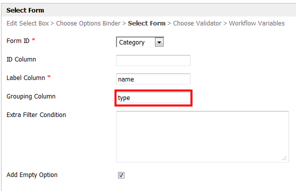 It is also possible to populate Options through the use of Options Binder. For example, the form table below stores all categories.