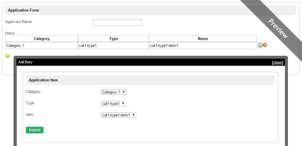 Form Grid extends the default functionalities of a typical grid element. Unlike the generic grid element that only accepts standard text field for its inputs, the Enhanced Grid Form Element captures data by making reference to another form element. Hence, one can take full advantage of what a typical form element has to offer, e.g., validation and formatting.