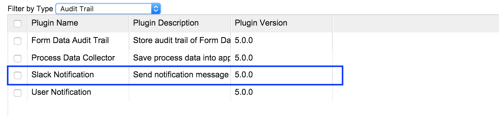 Create a "SlackNotification" class under "org.joget" package. Then, extend the class with org.joget.apps.app.lib.UserNotificationAuditTrail class which is extends org.joget.plugin.base.DefaultAuditTrailPlugin abstract class. Please refer to Audit Trail Plugin. We will need to implement org.joget.plugin.base.PluginWebSupport interface class as well to provide a send test message button in plugin properties page. Please refer to Web Service Plugin.
