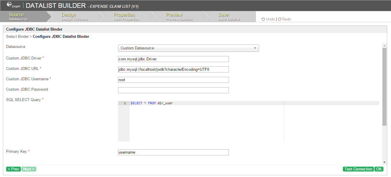 JDBC Datalist Database Binder gives you the flexibility of designing a list by using your own custom SQL query and connection.