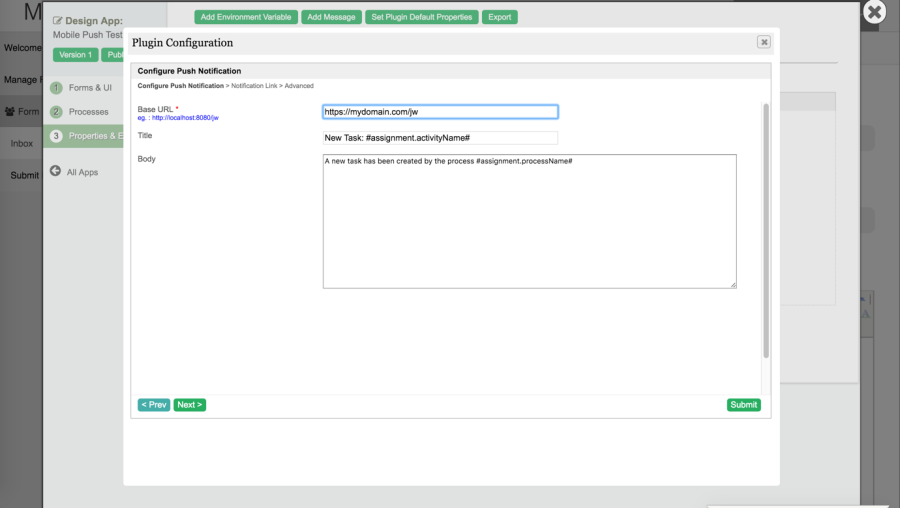 2. Install the Mobile Push Notification Plugin into your Joget Workflow installation.