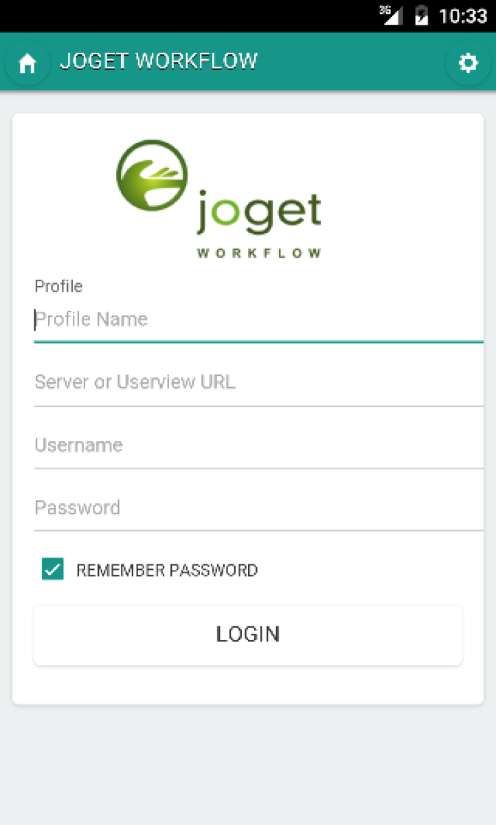 1. When the app is launched for the first time, you will see a profile creation form after the splash screen. Key in the details of your Joget Workflow server: