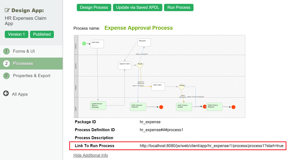 By including the link generated from the Process's view in the external pages, one can quickly enables its users to start/run a process instance in Joget Workflow.