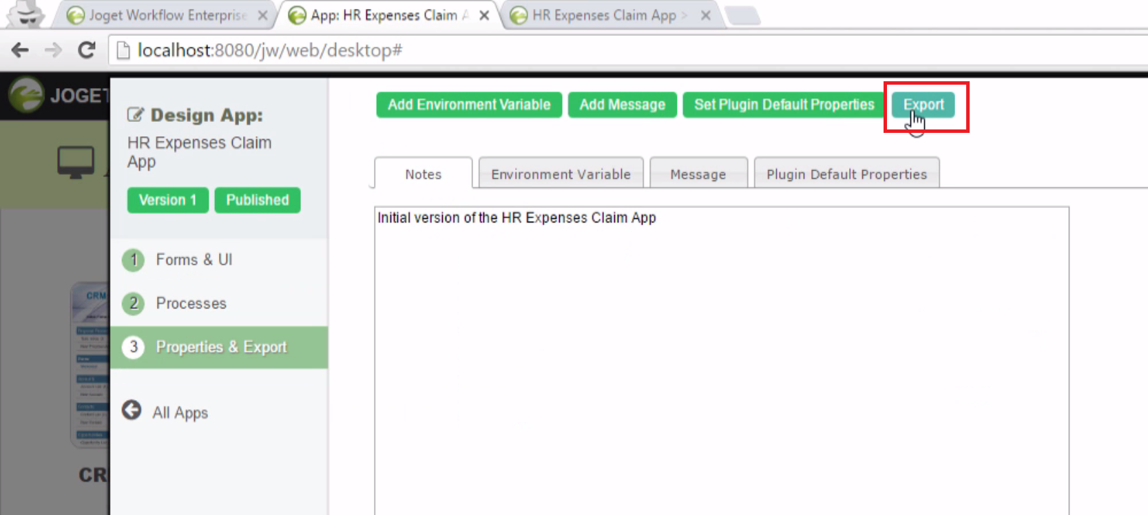 - From your Joget Workflow's App Center, go to your intended App's design.