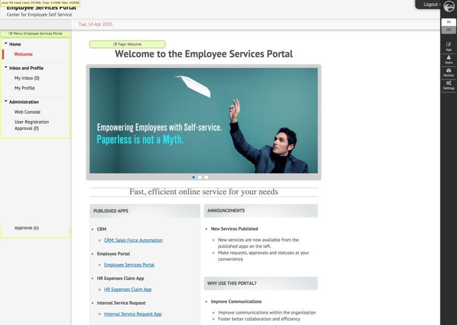 For administrators and app designers, the new Admin Sidebar is easily accessible from almost everywhere, sliding out from the right for a consistent user experience.
