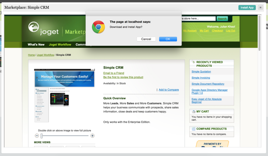 The App Center now offers seamless integration with the Joget Marketplace so apps can be installed at the click of a button.