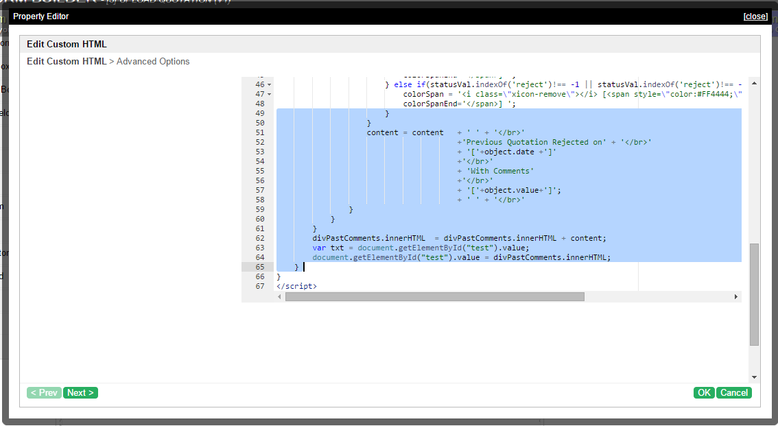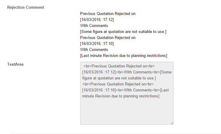 I have some script to set the rejection comment using js and the outcome using html attribute. Just wondering how can i copy the value display at the form in my textarea(form) without any html tag. So I can store the attribute to database as references. please refer image attached.