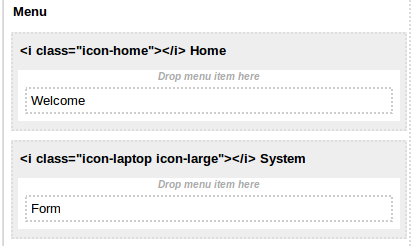 Solution: Add the script "<i class="icon-laptop"></i>" to your child menu "Form" and the icon will appear. Edit the same to the "Welcome" child menu.