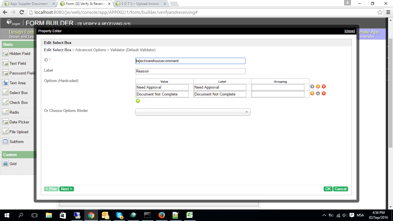 I'm having trouble when i want to get value of my select option. Fyi, i'm using the javascript to collect the rejection comment from user selection from select option when user submit the form. Btw, it will return me null value for the select option. I have try to change the select to textArea and its works greats. I wondering that my javascript can't retrieve the value of the select option to store into my table. Please find details print screen for better understanding. Thanks for the help!!