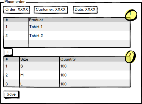I am designing a system to place orders from a garment company. Basically an order is a list of products, sizes and quantities. What we have thought is basically this mockup: