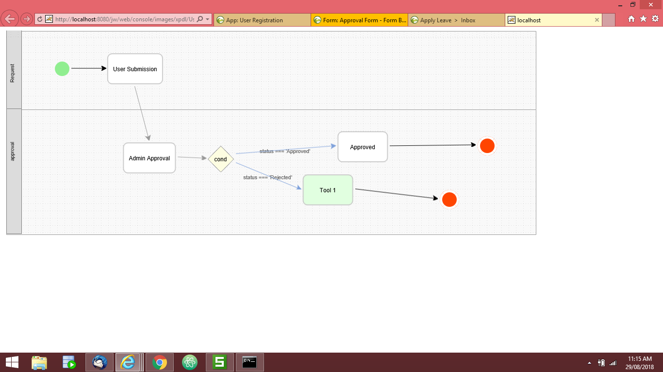 My Idea is: User(say ash) will fill a form in respective login and the admin should get an approval message in admin inbox, when the admin approves the message in his inbox it should be updated and user(ash) should get an message about the completion of task.