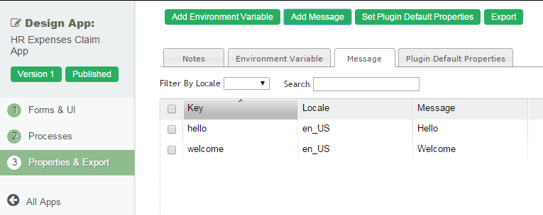 With the messages added, one can now access them using the App Message Hash Variable (Internationalization) Hash Variable.