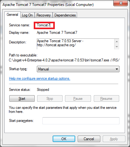 - You may verify it on Tomcat's service properties.