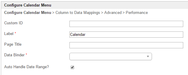 Auto Handle Date Range | Enable to auto handle date range or disable to manually use #requestParam.start# and #requestParam.end# in your binder configuration. Date format is yyyy-MM-dd. |