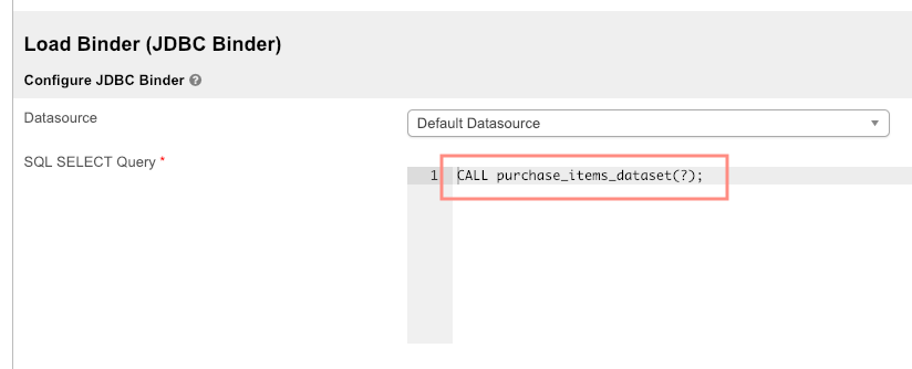 With the stored procedure to return the appropriate dataset that we need, we will just need to call it from the JDBC Binder.