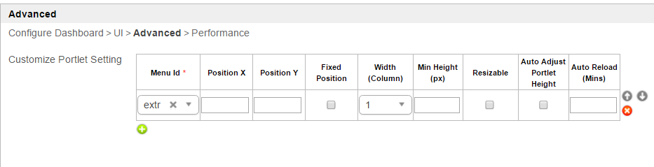 Customize Portlet Setting | You can configure each of the portlet defined in the first tab here in terms of positioning, dimension, etc. |