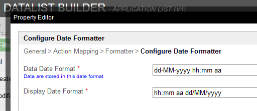 The Data Date Format that we should set should be based on preview from the Datalist Builder itself.