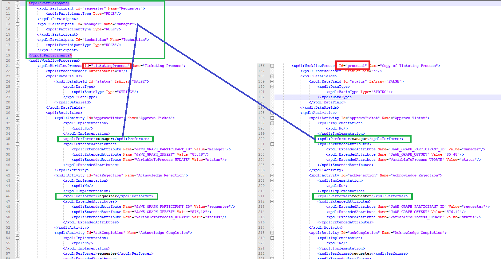 Take note that both processes would still use the same of of participants. Modifying the name or removal of participant at any of the processes may affect all other processes that uses the particular participant.