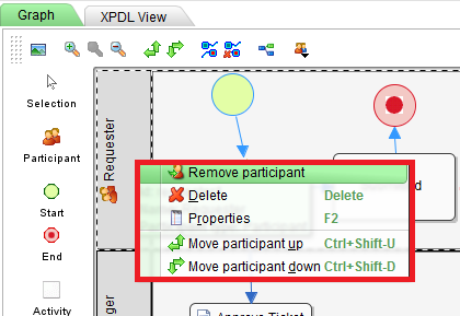 2. Create new participant, locate the activities that use the old participant in the XPDL view and do a search and replace in your favourite text editor.