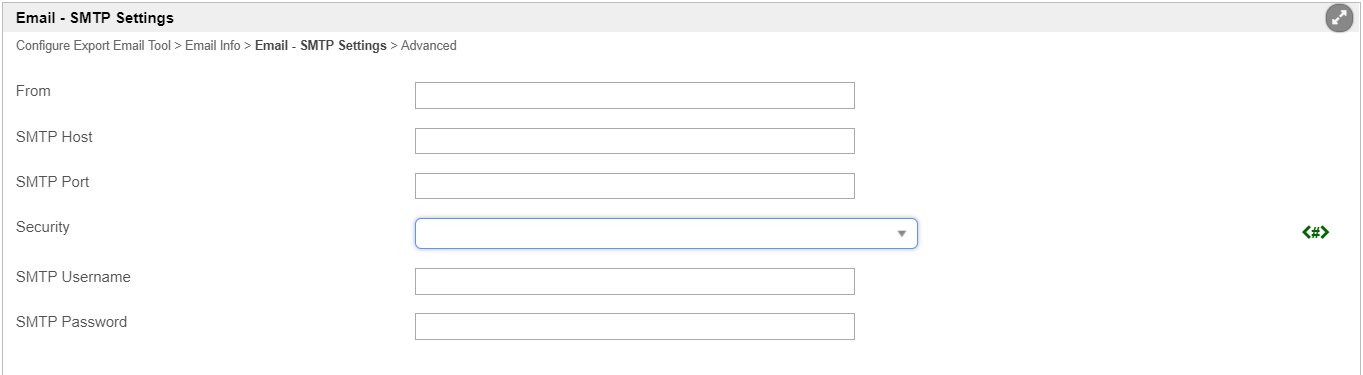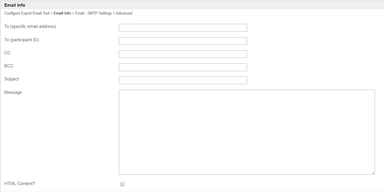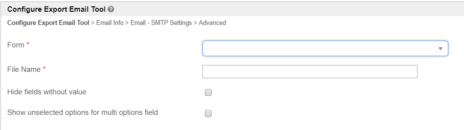 Figure 3: Export Form Email Tool Properties - Email SMTP Settings