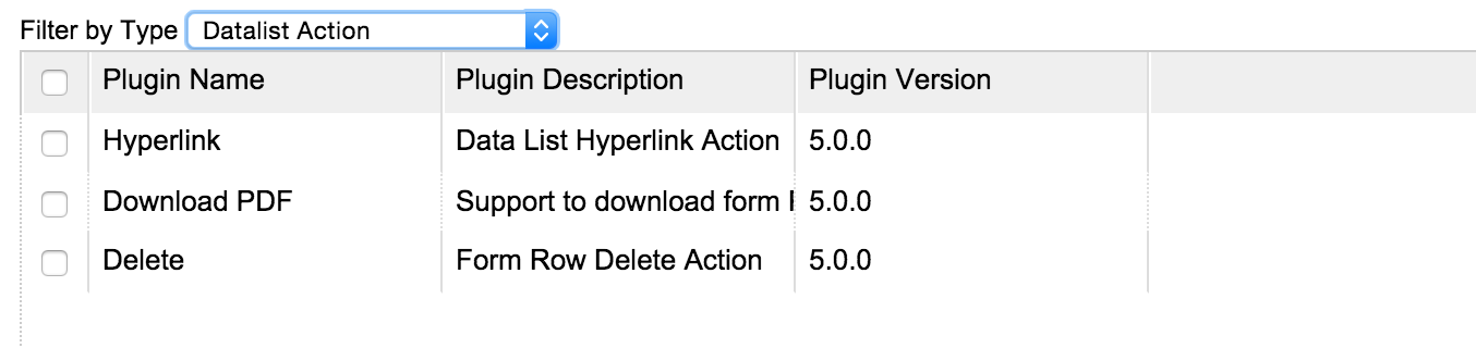 Then, let's try it in one of the datalist. You can see our new plugin shown under "Actions" in Datalist Builder.