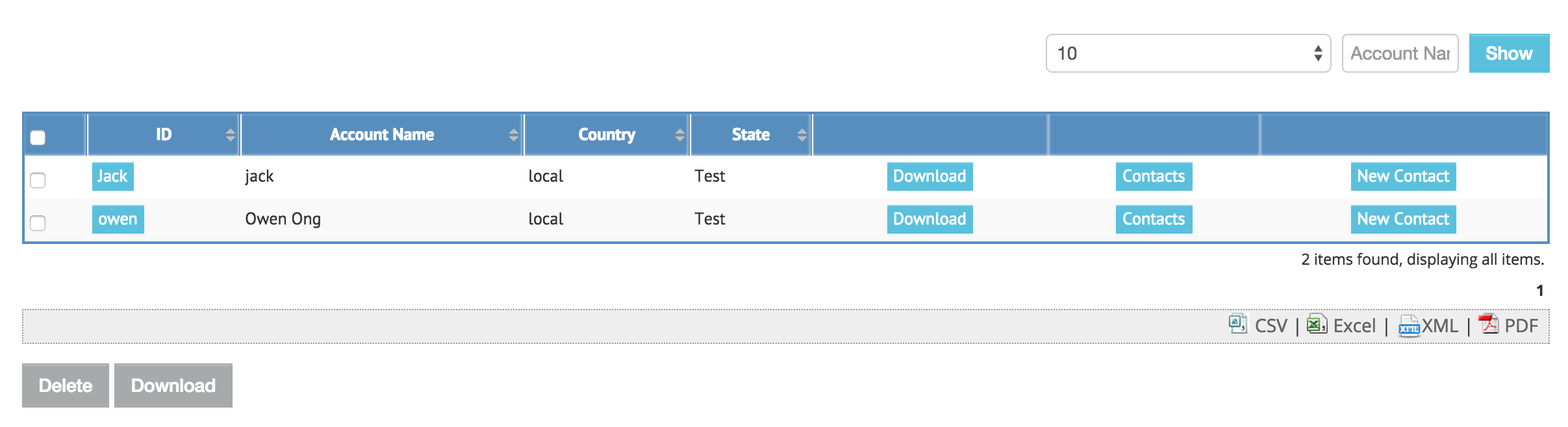 Let's add the "Download PDF" action as row action and also the whole list action for testing. We can see the "Download" button shown correctly in the userview screenshot below.