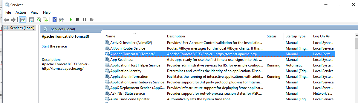 - Get back to the \apache-tomcat-8.0.33\bin folder. Open up tomcat8w.exe.