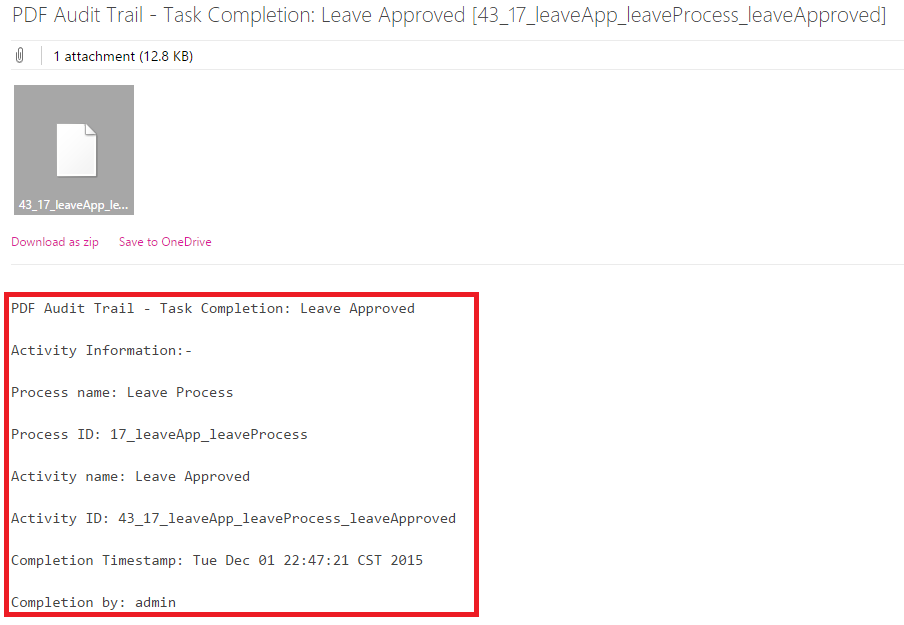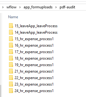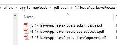 - With the option Store File Locally checked, PDF file created will be stored in wflow/app_formuploads/pdf-audit/[Process Instance ID] folder.