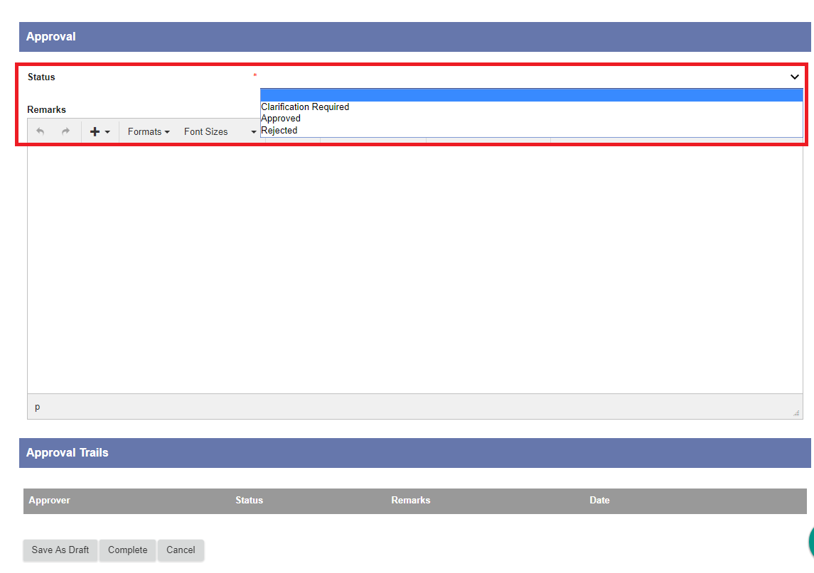Figure 1: Approval Form Generated Using Generate Process - Approval Process