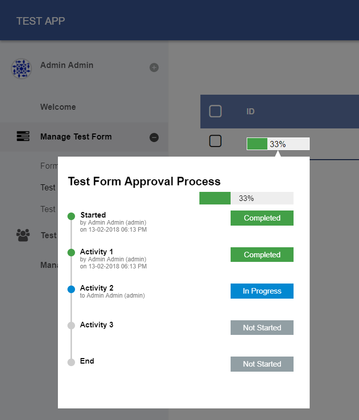 Process Status Formatter displays the process completion percentage and process path of the records.