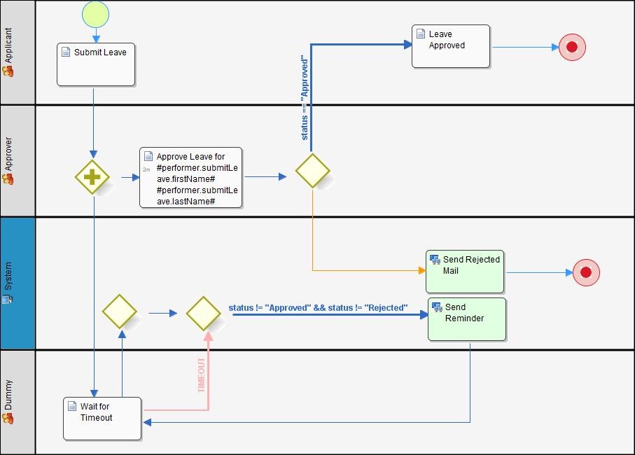 Figure 1: Asynchronous deadline set at "Approve Leave" activity to "Send Reminder"