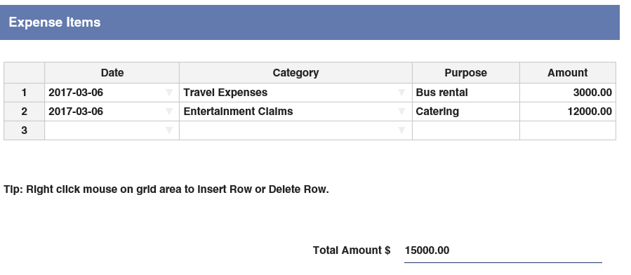 Number of spare rows | Number of spare row to be added automatically after lines with values. Sample 1 spare row |