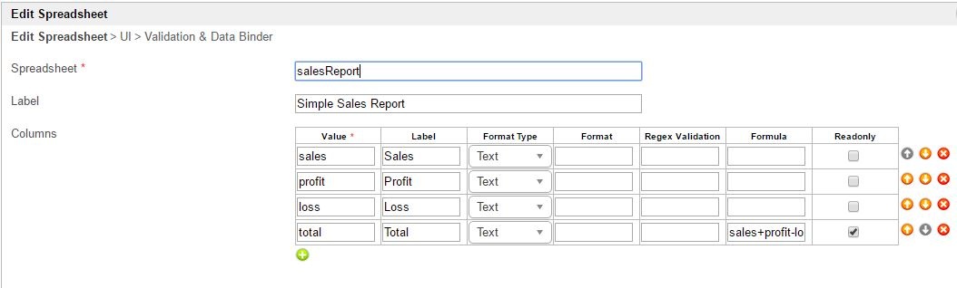 Figure 3 : Spreadsheet Form Element Properties - UI
