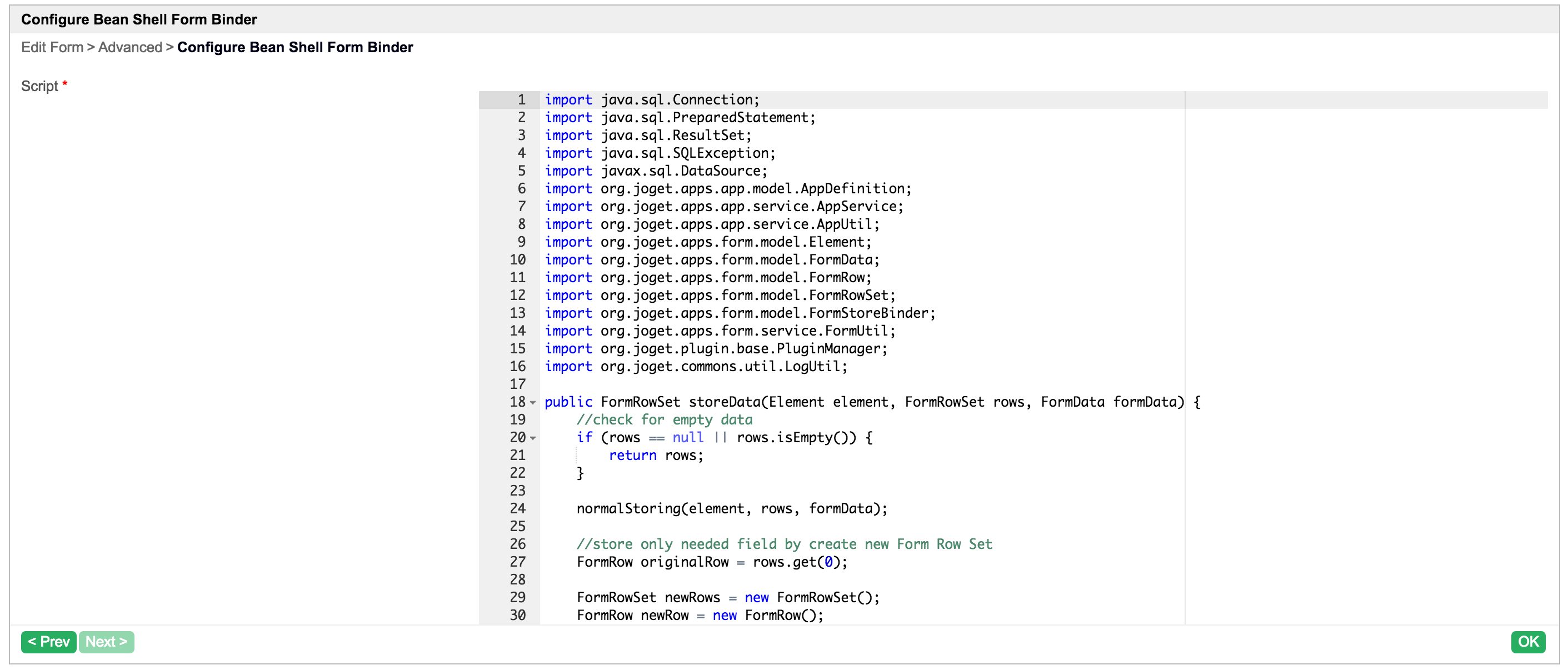 Figure 3: Populate Bean Shell Form Binder with the Necessary Codes