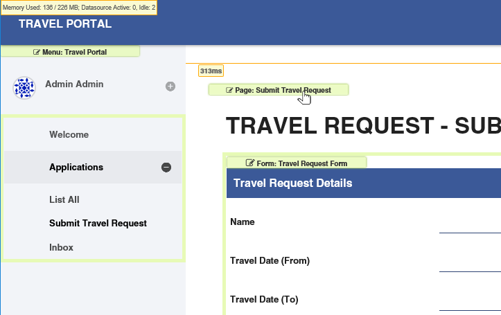 Quick Edit Mode allows administrators to identify forms, lists and menus directly from the front-end Userview.