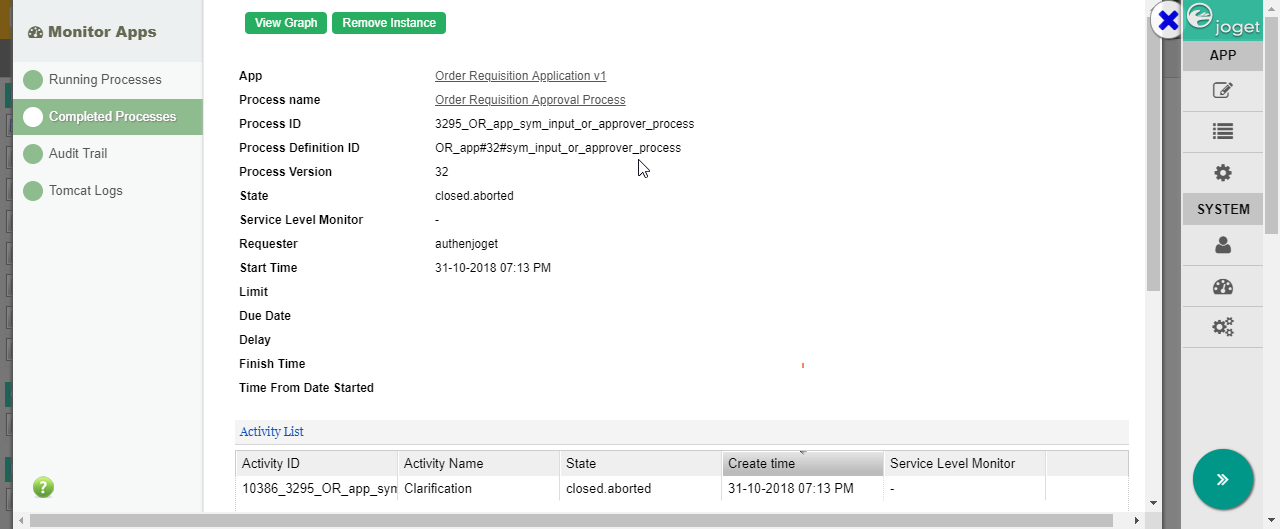 We have noticed that once we update process, JOGET will close (abort) all running processID and create new processID instead.