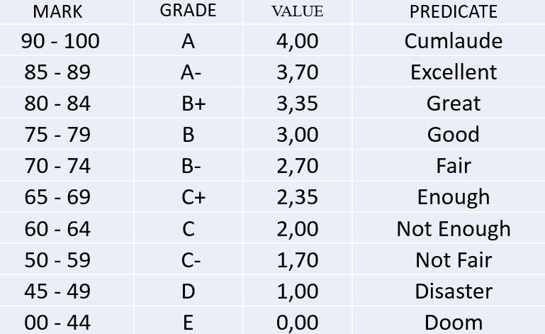 How should i do in a spreadsheet to produce value GRADE A- and VALUE 3,7 from MARK 87 (between 85 - 89).