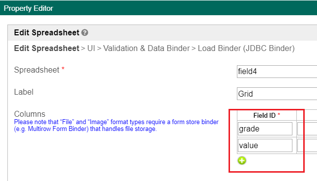 simply insert the query column name without the prefix "c_" into the spreadsheet properties under Edit Spreadsheet > Columns > Value