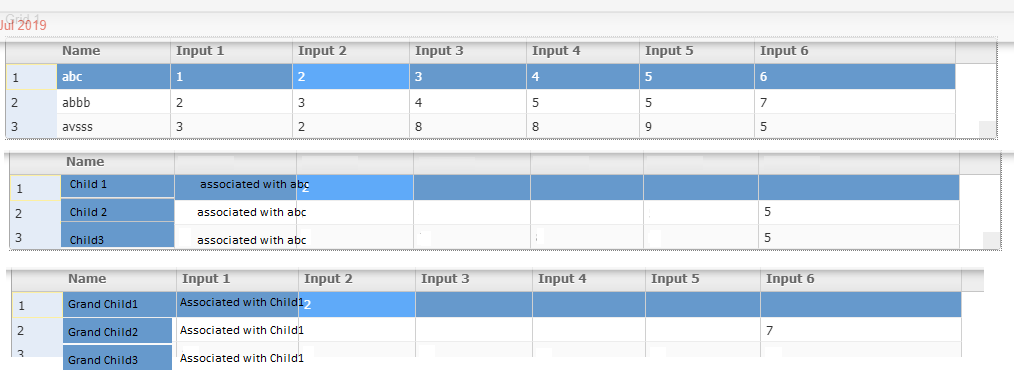 Example Student Parent Table Course Child Table and Lectures Grandchild Table. Each of them dependent on the selection of row of last table.