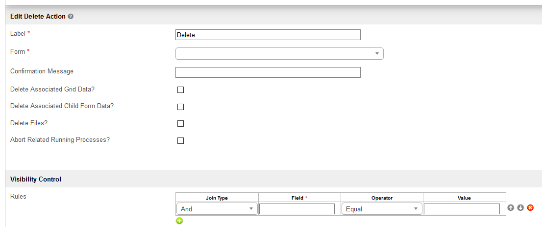 Delete Associated Grid Data? | หากฟอร์มป๊อปอัพมีองค์ประกอบตารางตัวเลือกนี้จะลบข้อมูลเส้นตารางภายใน Caution ตัวเลือกเหล่านี้ (Delete Associated Grid Data, Delete Associated Child Form Data, Delete Files) ใช้ร่วมกับองค์ประกอบตาราง / ลูกที่ซ้อนกัน ตัวเลือกเล่านี้สำรวจต้นไม้ในแบบฟอร์มทั้งหมด เมื่อพบเงื่อนไข 'false' จะย้ายไปยังองค์ประกอบตาราง / ลูกถัดไป ตัวอย่าง: พิจารณาว่าฟอร์มป๊อปอัพมีฟอร์มตาราง ฟอร์มตารางมีฟอร์มย่อย ฟอร์มย่อยมีองค์ประกอบอัปโหลดไฟล์ที่มี abc.pdf หากตรวจสอบตัวเลือกทั้งหมด abc.pdf จะถูกลบ หากทุกคนยกเว้นหนึ่งในตัวเลือกที่เลือกไว้ abc.pdf จะไม่ถูกลบ |