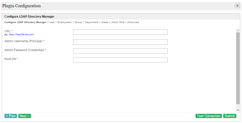 Admin Role Import Search Filter | (&(objectClass=person)(cn=admin)) Please refer to other LDAP Search Filter syntax. |