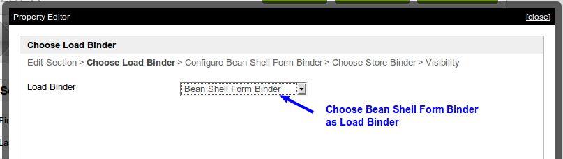 In Load Binder, select "Bean Shell Form Binder" as the Load Binder.
