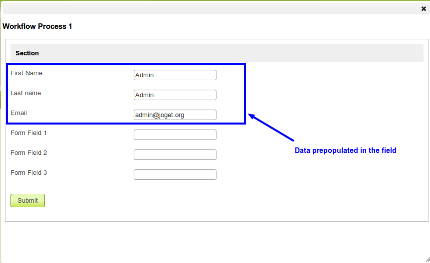 Figure 1 below shows an example of a form whose first 3 fields are to be pre-populated.