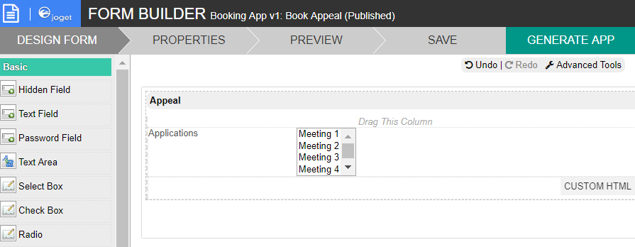 This would bring us to the page as shown below with a form. The select box in the form has the 2 options earlier checked.