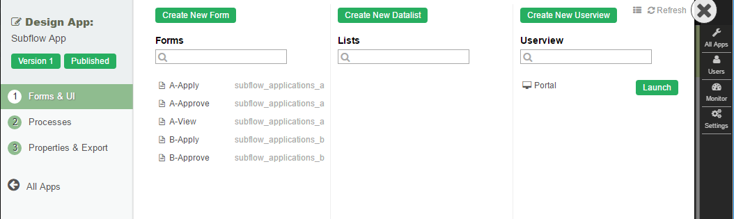 This is a sample application meant to demonstrate the use of Subflow with each process maintaining its own Form table setup.