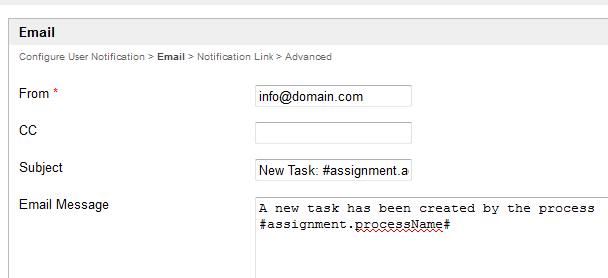Note: The User Notification plugin is designed for all activities in an app and not just for a selected few, but only one User Notification plugin can be configured per app. Nevertheless, it is possible for you to manually handle the notification for a specific activity by placing a tool after that activity in your process design, and then excluding it in the Activity Exclusion list in the User Notification plugin.